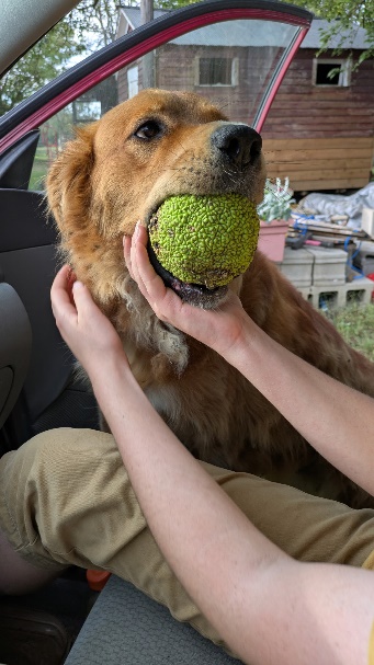 This week has been a mix of weather with rain and clouds and then gorgeous sunshine for the past three days. We had a total of .83 here on the hill this week which is more than enough rain to make mud! It was such a sticky mud that the cows were kicking backwards while standing in the barn, trying to get it off their feet! It was kind of like playing “cow dodgeball”! 😊 For three days, there were these mutant looking faces sticking out of their huts down in the goat pen because they do not like rain falling. They don’t like mud either but rain is #1 on their list of dislikes. On the other hand, the pigs are absolutely in mud heaven! They love mud. They come running in the evenings after having their “mud soaks” and give Katy leg rubs are she carries their supper out to the pen which they treat as a hotel these days. So, if you come by and see that Katy has blue jeans that are half brown jeans, you will know that the bottom half was painted by the pigs. The pigs stop in at their pen to have lunch or breakfast and then tear off to do whatever free ranging pigs do. So far, they have stayed within the confines of the 40 acres and we are hoping they continue to stay within that boundary. We have cheated with the chickens. The weather has been so beautiful the past couple of days that we let them out around noon every day. It has been confusing to Hank who is supposed to be the farm security dog. He has no idea who is supposed to be where and today when Katy tried to get him to help herd, he just chased her instead. Hank is enjoying another fall ritual on the hill. There is something satisfying about playing “hedge ball” – hearing the bat sound of “splat” when you make a good connection is just part of fall. Hank doesn’t bat but he could play outfield!