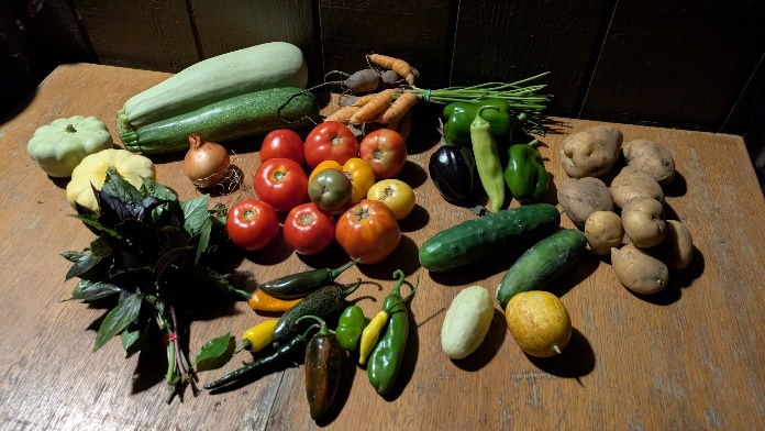 Tomato production is really slowing down along with the cucumbers and squash. The okra was never able to come back from the hail storm nor were the green beans. We are definitely going to have to work on the nematode problem as it limited sweet pepper production and was a factor in not having eggplant in the bag this year. In reading about the microscopic pests, the recommendation is soil solarization so we may have to try that again this fall. The temperature has to be 125 degrees to kill them instantly. We tried it last year but there were a couple of steps such as wetting the soil first that we were not aware of and that may make a difference. Up to now, squash bugs were #1 on our dislike pest list but I think that nematodes are overtaking them. We feel lucky that our late planting of squash and cucumbers produced and that it was in the tunnels when the hail came through. The cucumbers that we have been eating have been delicious.