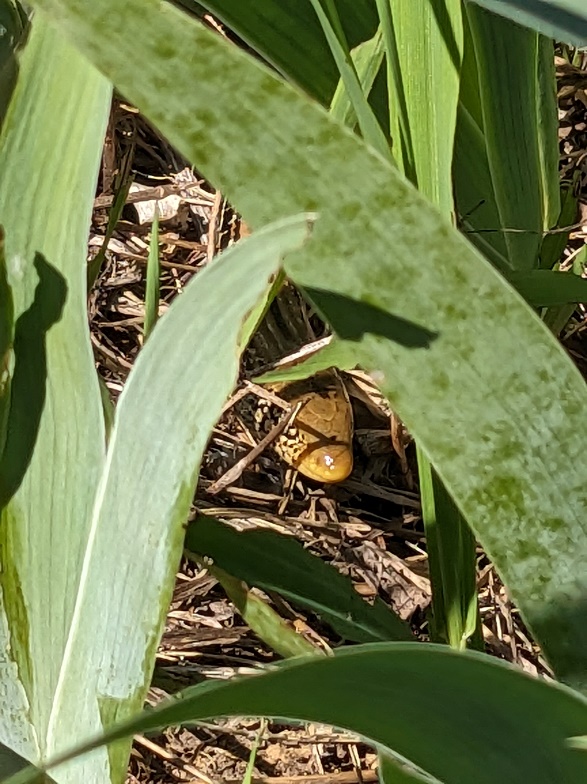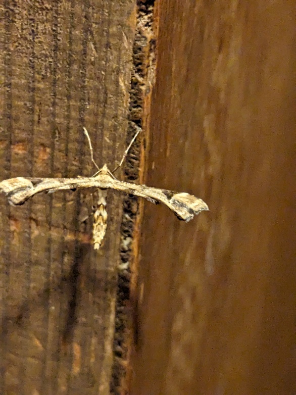 BUGS and SNAKES – Weeding the irises was a little tricky for Katy this week with her new found friend keeping track of what she was pulling out and then there was this mantis that we think was pregnant climbing on the pampas grass and finally we found a moth that we have seen many times but never identified and we love the long name – platyptilia carduidactyla or more commonly called an artichoke plume moth.